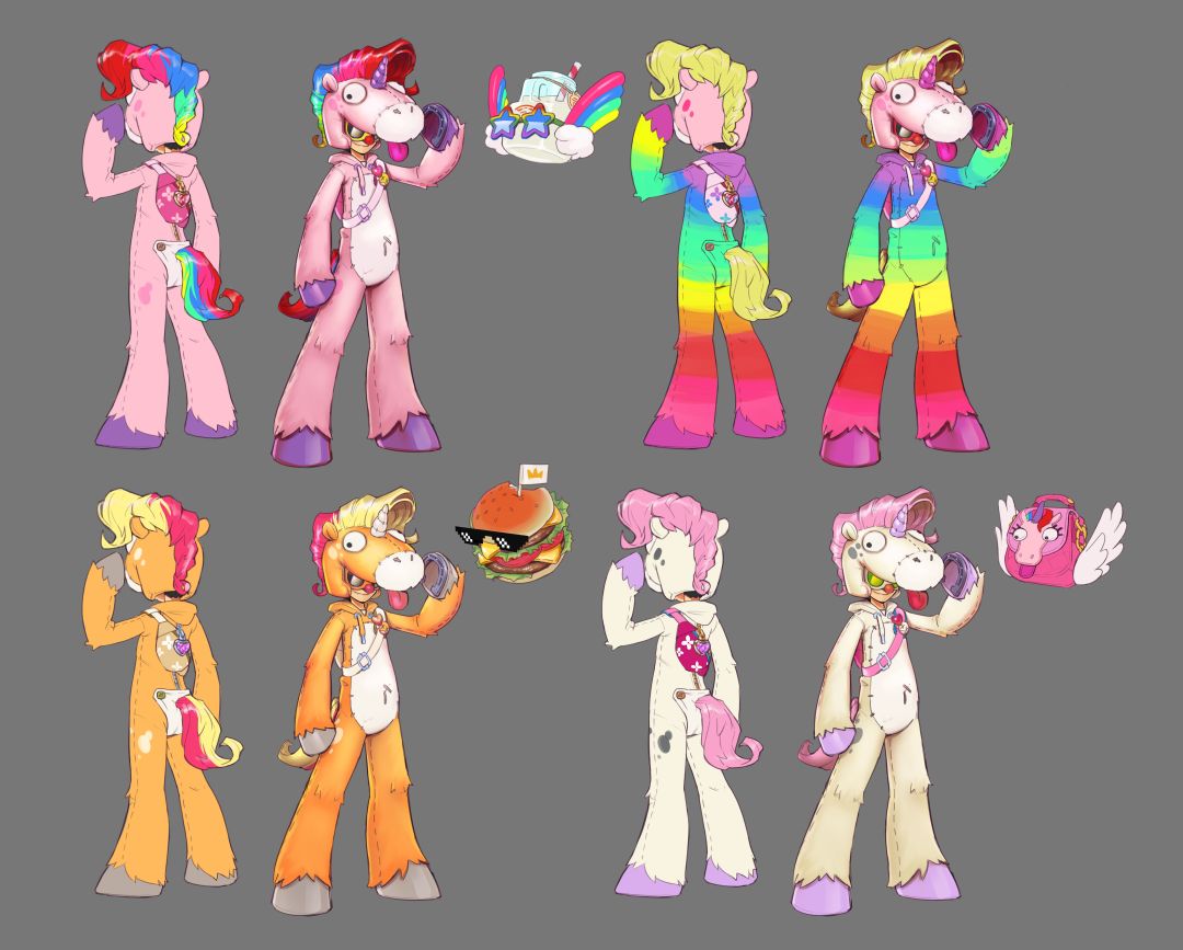 第二套皮肤是Sivi的愚人节装扮!这套皮肤同时也是最高级别的皮肤,不仅角色外形被完整替换,还会有不同的特效展示哦。下面为设计初期的方向稿(能不能做完是未知数:P),最终我们选择了哪套,还请等服装店开业之后,亲自进店看看吧!