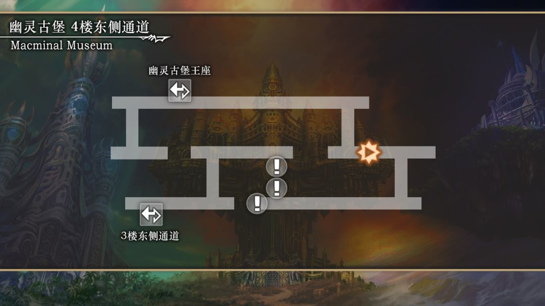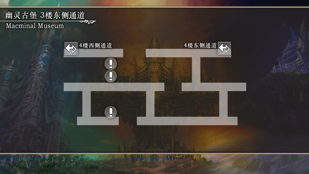 幽灵古堡 4楼东侧通道1、在地图下方打开机关,穿过旁边的铁门,从地图左下方进入下一层。