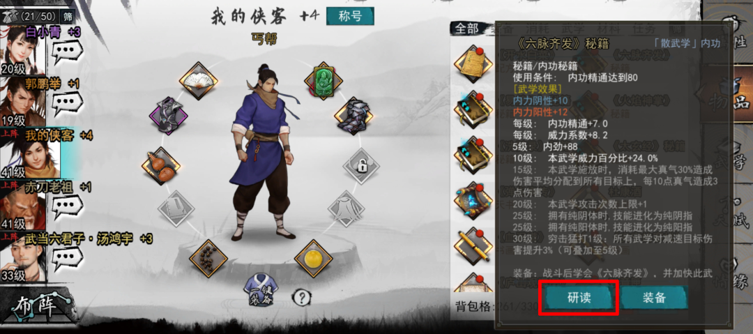 研读提升并非一味地消耗秘籍也讲究搭配组合,大侠们有哪些武学研读的小技巧呢?