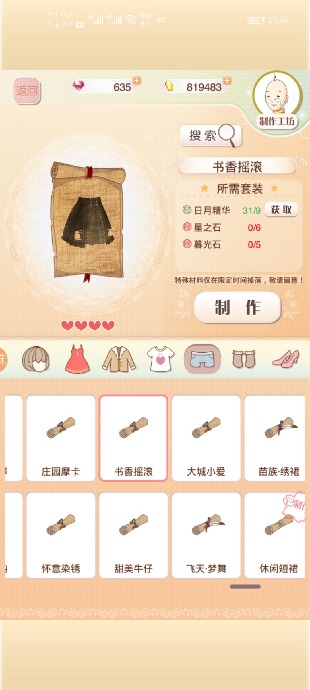 为什么暖暖里面制作衣服的材料后面都没有,是因为还没有到那种级别才得到的材料吗?我不知道为啥。