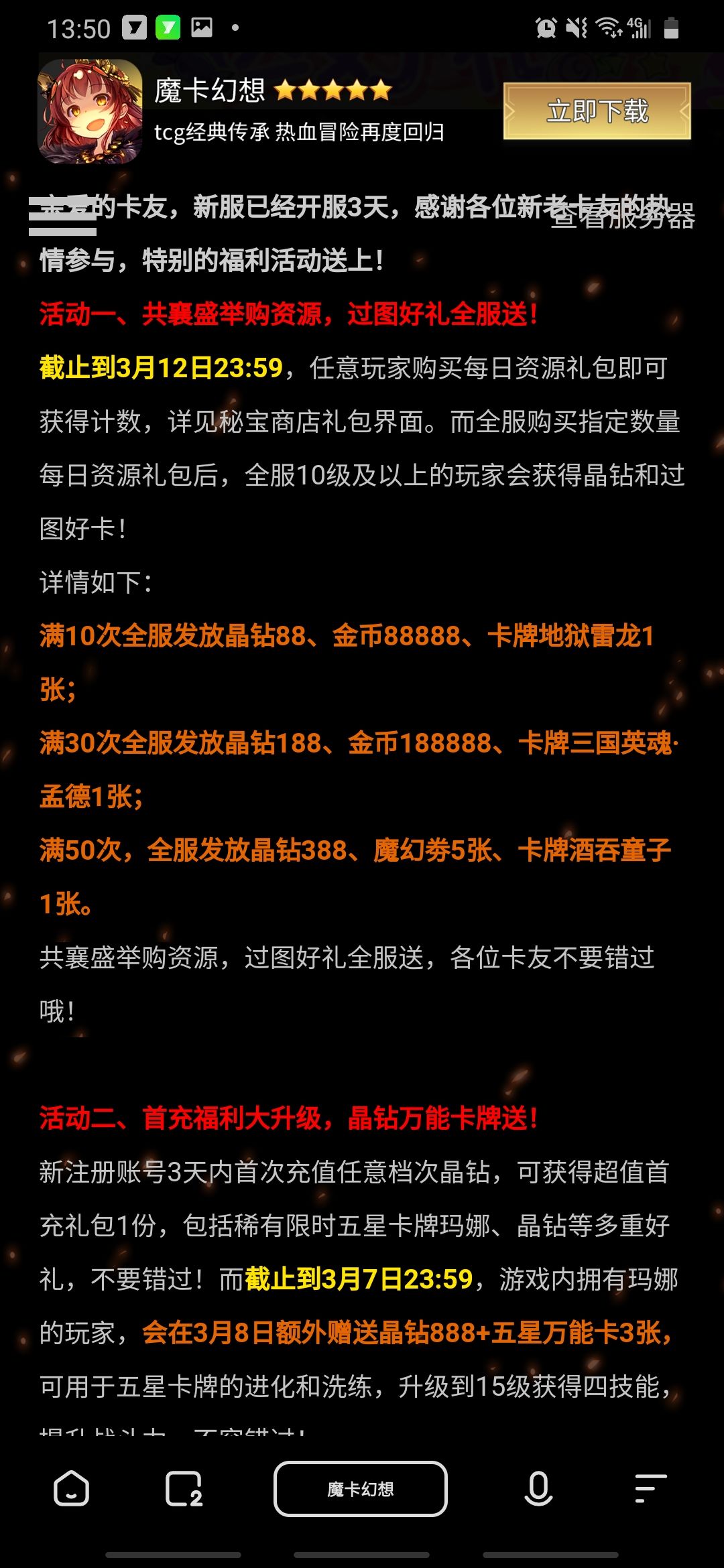 魔卡幻想 15服活动时间
