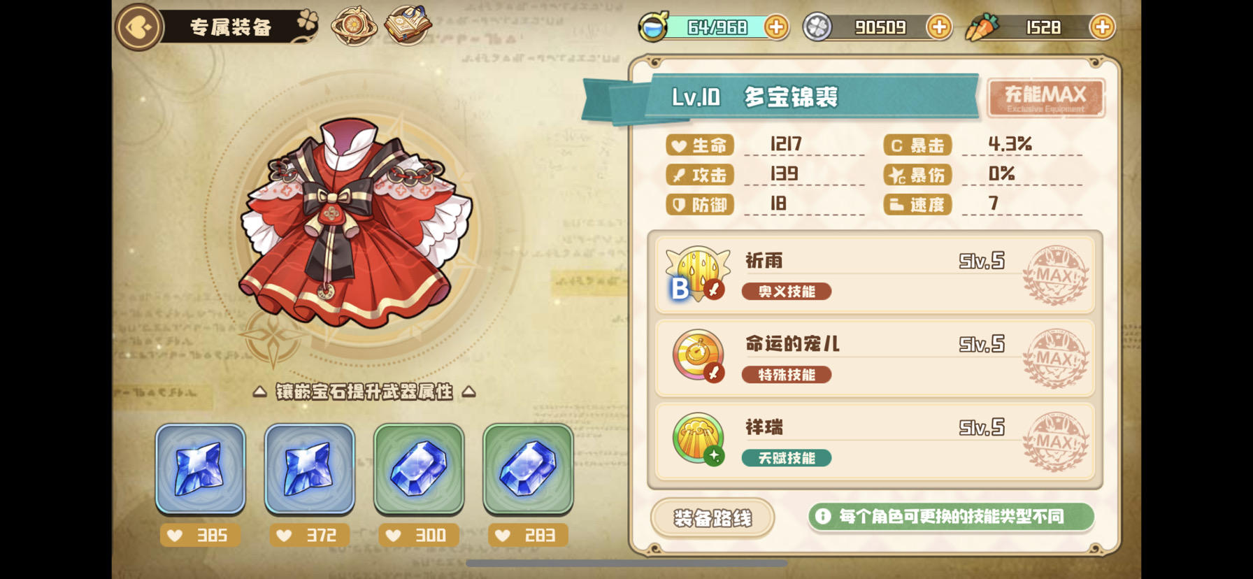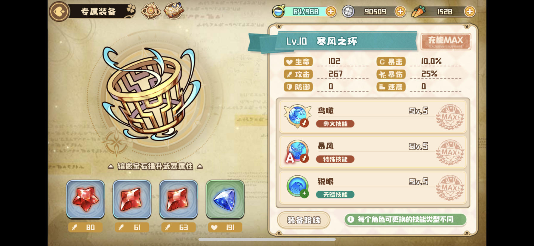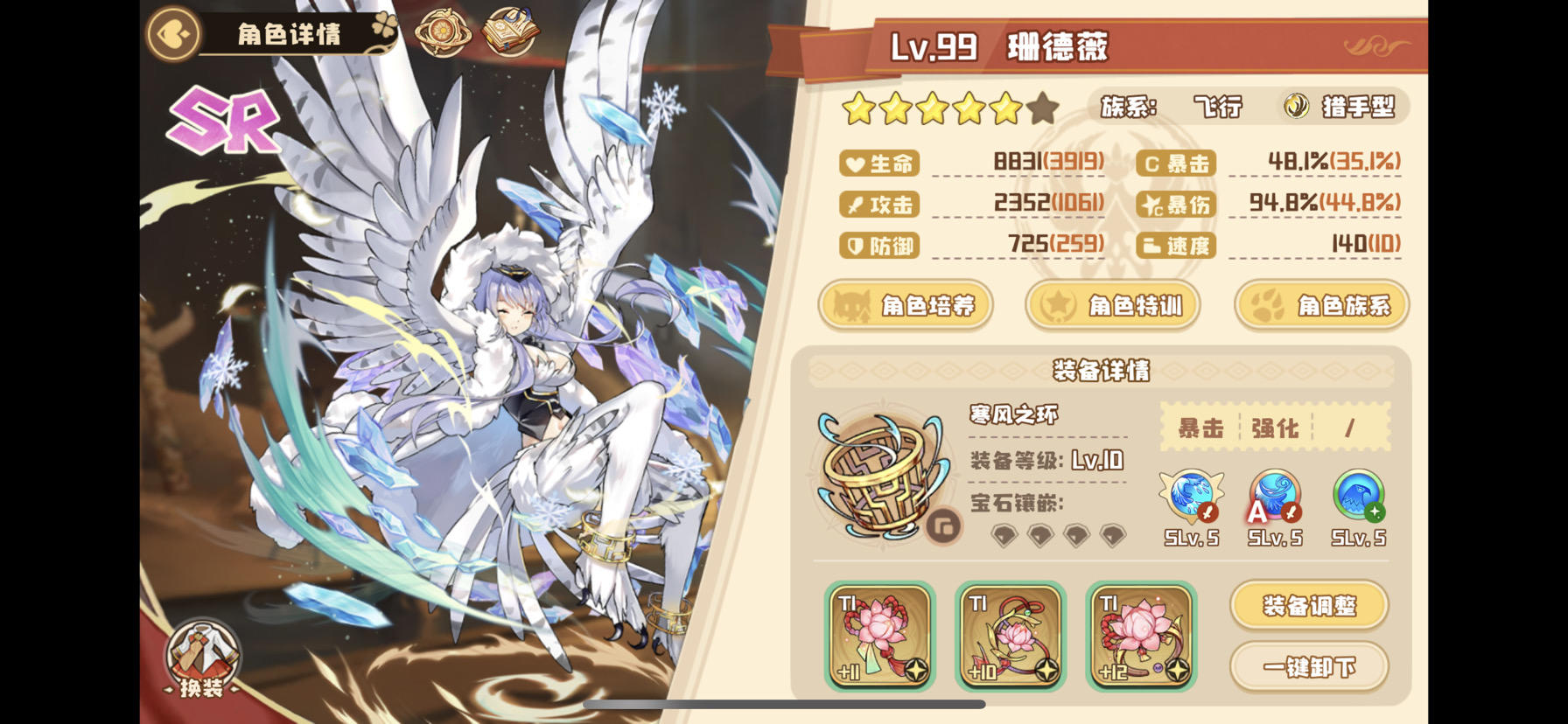 白鸟用元宵套装备,宝石加攻击力。血量8800挺勉强的,所以我加了个生命宝石。