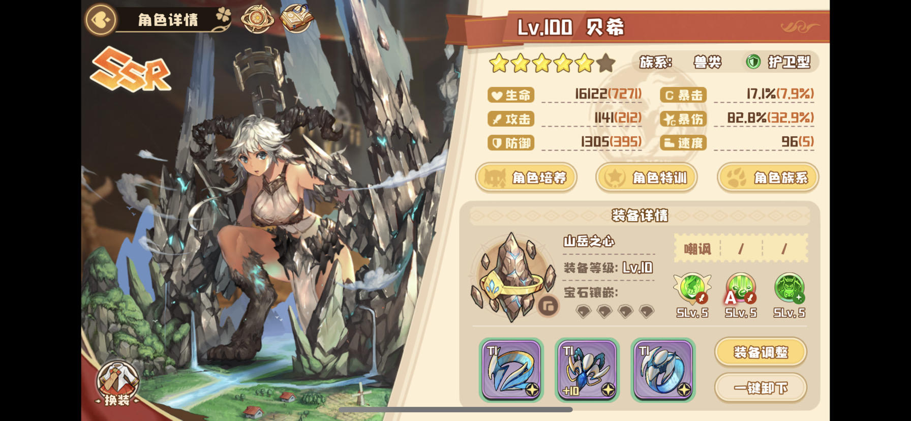 我贝希的练度较高,血量够,所以我用了防御宝石(因为血量4星以上就四个宝石,全给白了hhh.......)装备我觉得幽灵套还是需要的。紫装蓝装甚至白装个人觉得不太重要,重要的是幽灵套的效果。