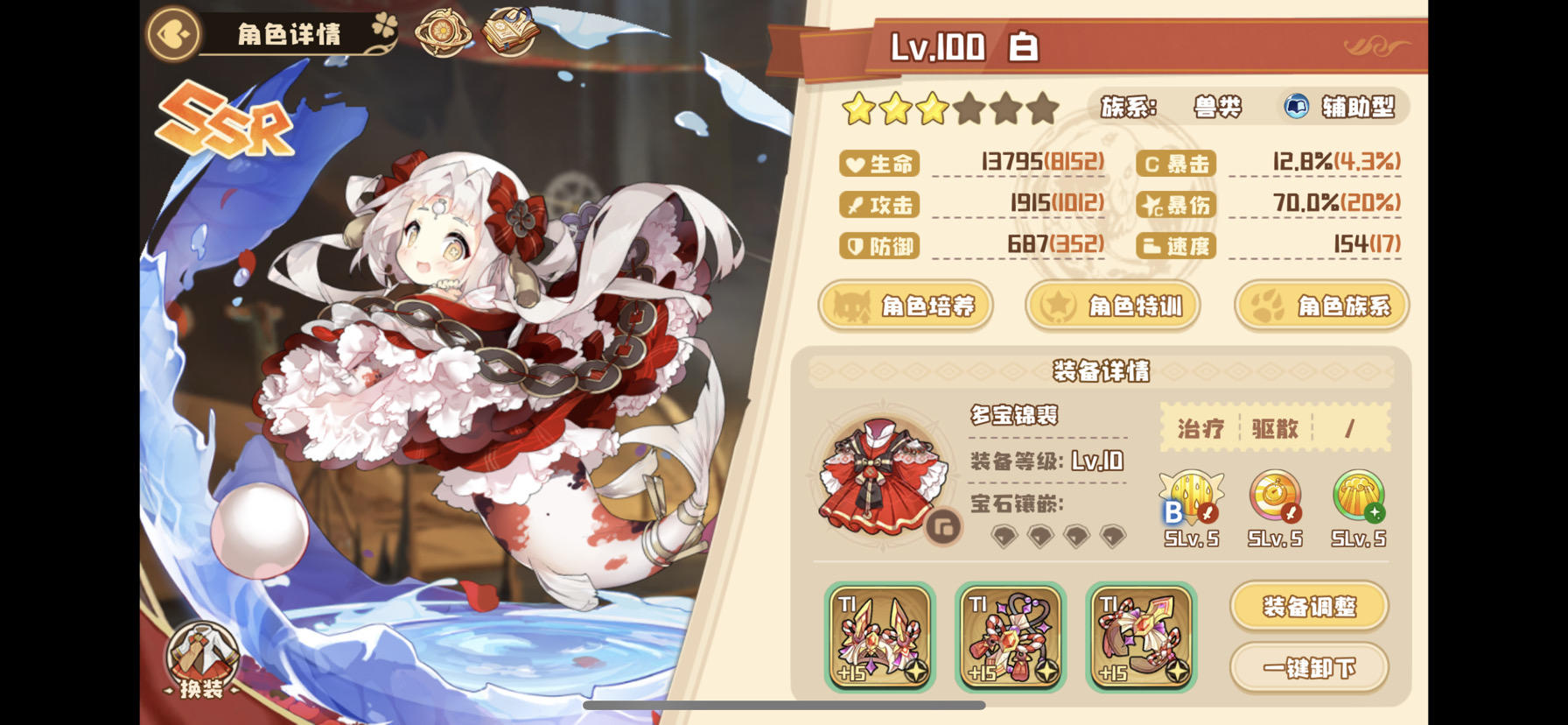 重点来了,因为我的白只有三星,所以我先给白生命宝石,和新手任务的t1+15装备,让血量上1w3。