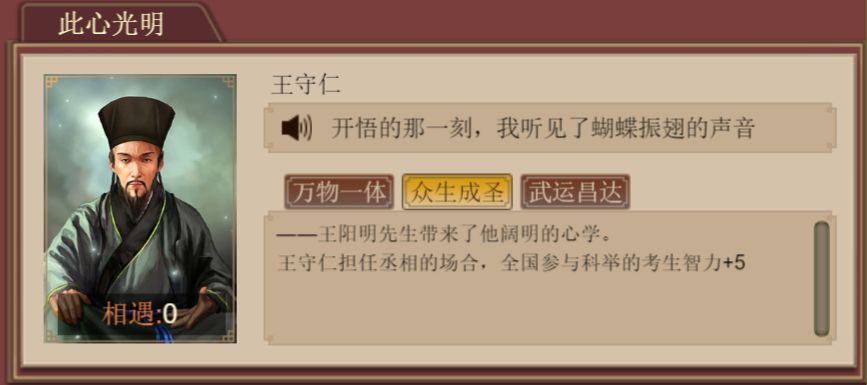 新增:王守仁个人技能:万物一体、众生成圣、武运昌达