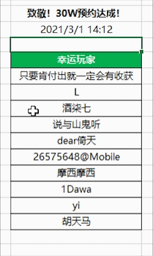 【获奖名单】致敬!30W预约达成!