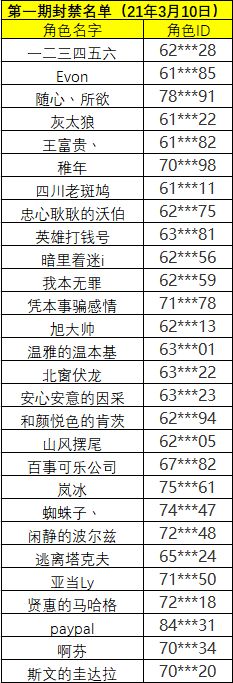 2021年3月2日-3月10日第一批封禁玩家名单
