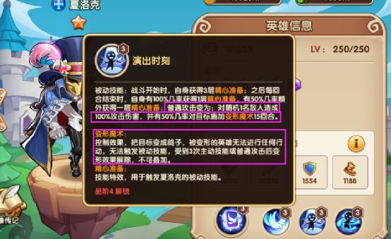 ● 疑点一:为什么鸽化的时空夏会一直闪避?技能描写里明明写的气盛是闪避一次普攻或大招,但实际上已经闪避了数十次了,马保国直呼内行。我们看看夏洛克变形魔术的效果