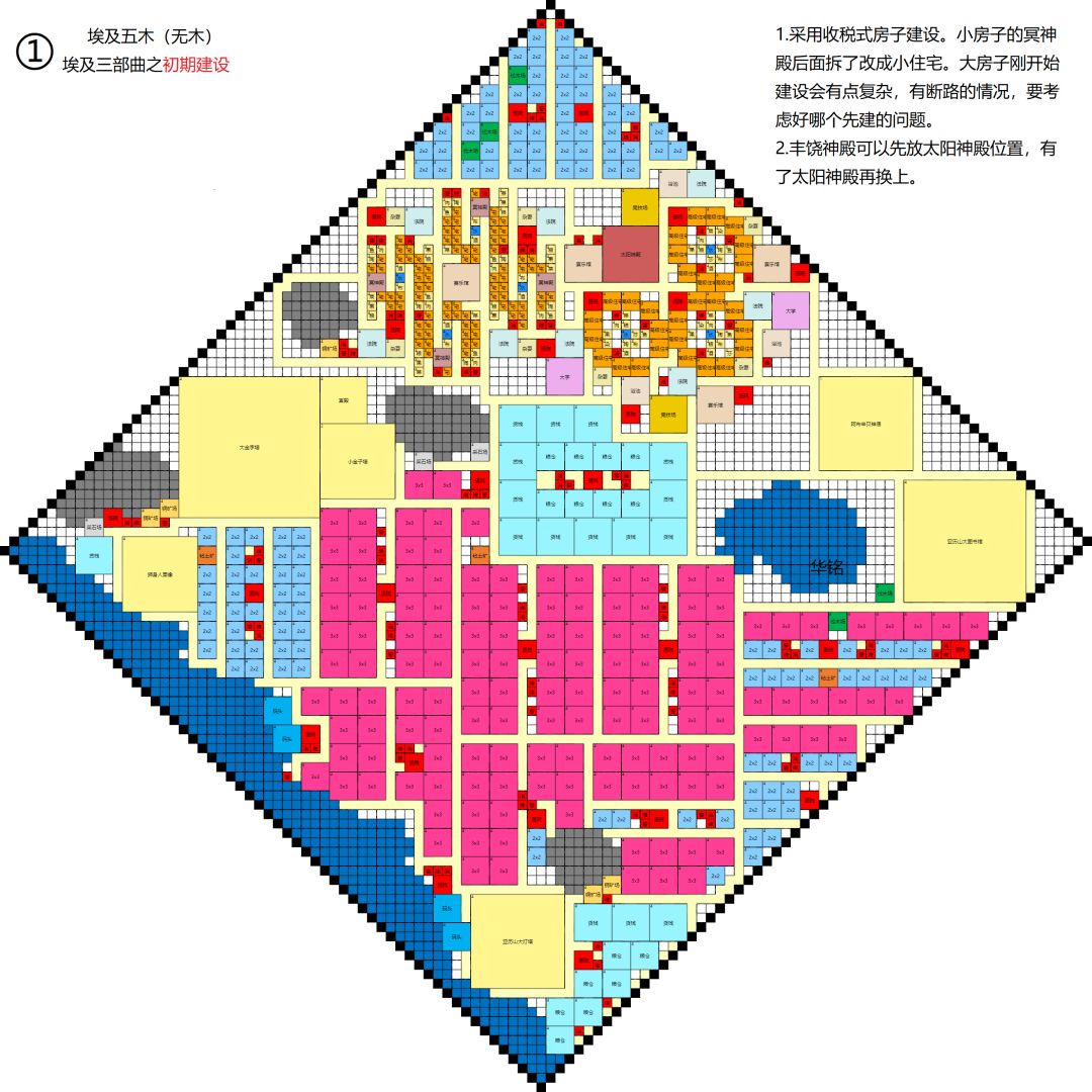 埃及的建筑风格都是方方正正的,真是强迫症的福音。小墨儿的布局风格也按照了埃及的建筑风格一样尽量让城市显得规整。别墅区伴随着阿布辛贝神庙坐落于此,看起来也是个爱你的形状呢❤。