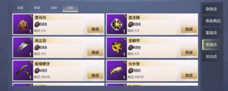 如果猎杀不了太大的中山异兽,血玉髓还可以通过系统的商城、拍卖行购买,或者是积攒大量的紫幽石,在异人村的紫幽店中购买,价格为688颗石头,每日限购一次,长时间积攒也可以获得大量的血玉髓。