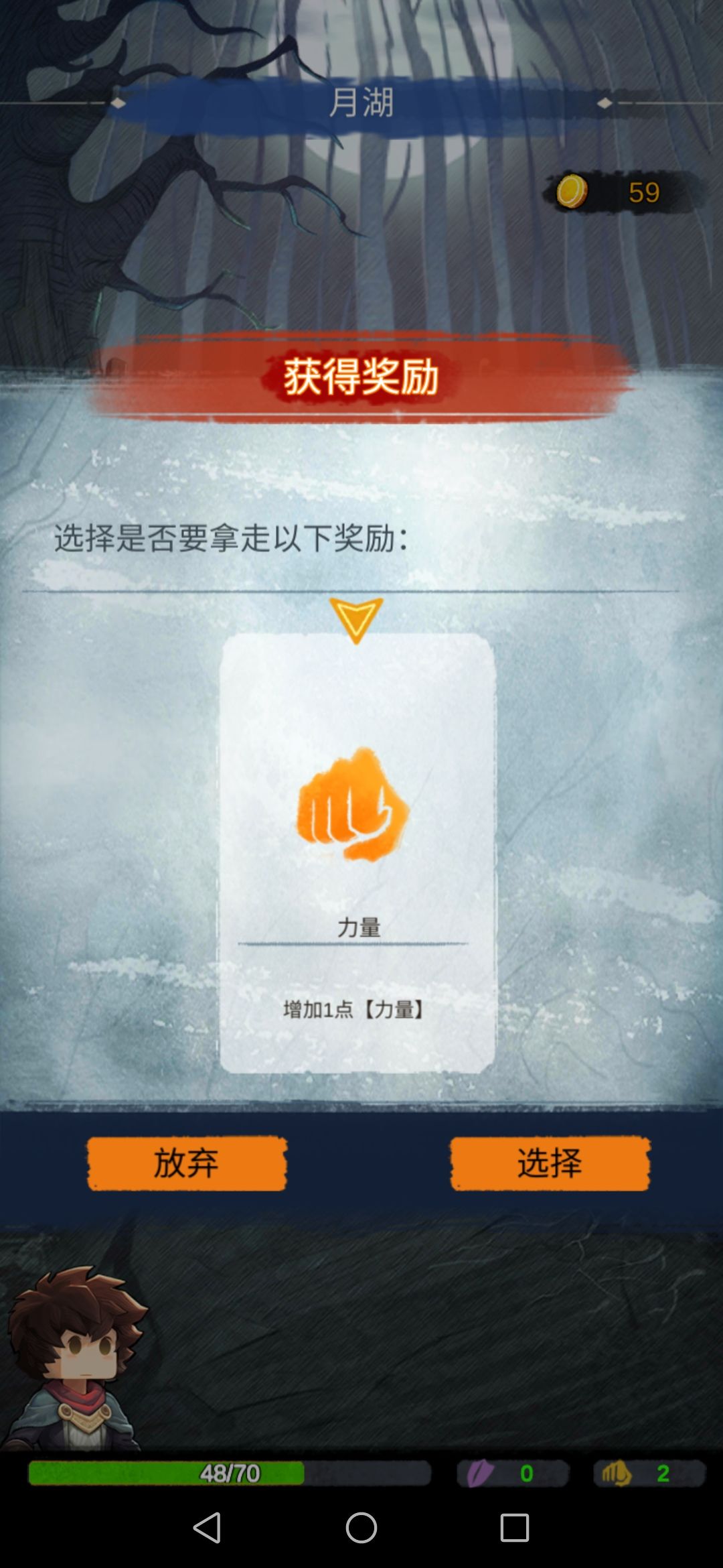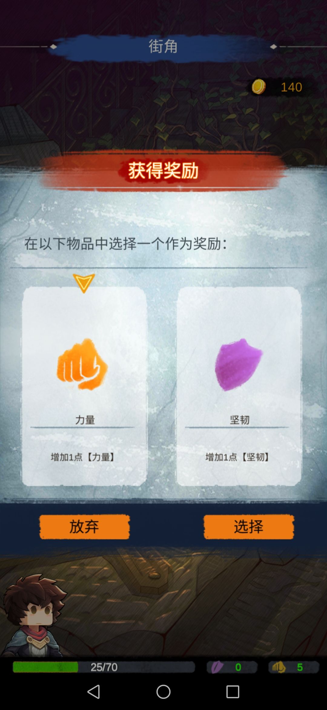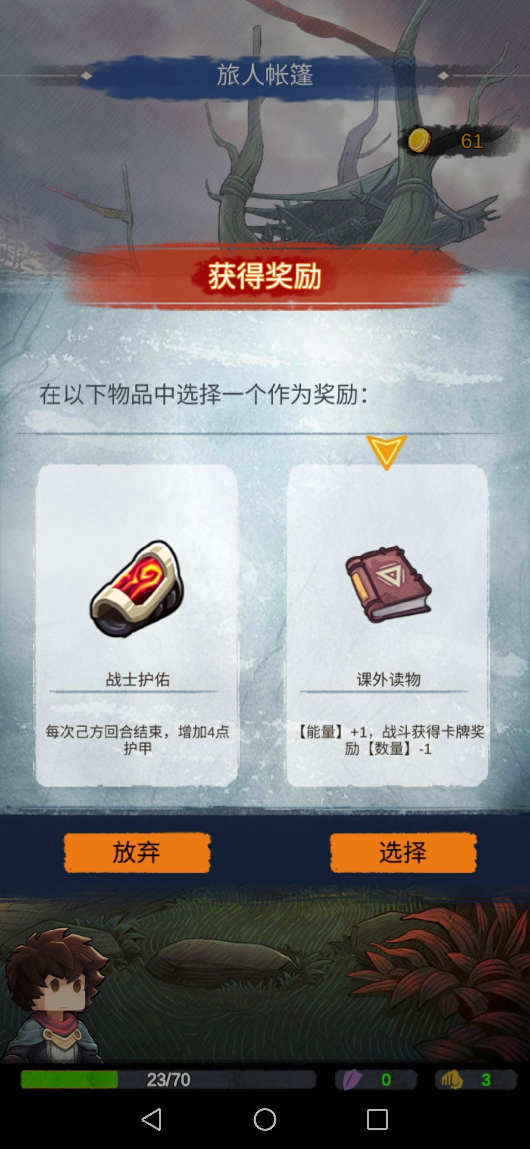 然后我们去旅人帐篷,会随机给两个道具。我们选择第二个,此时的力量流派就有了雏形。