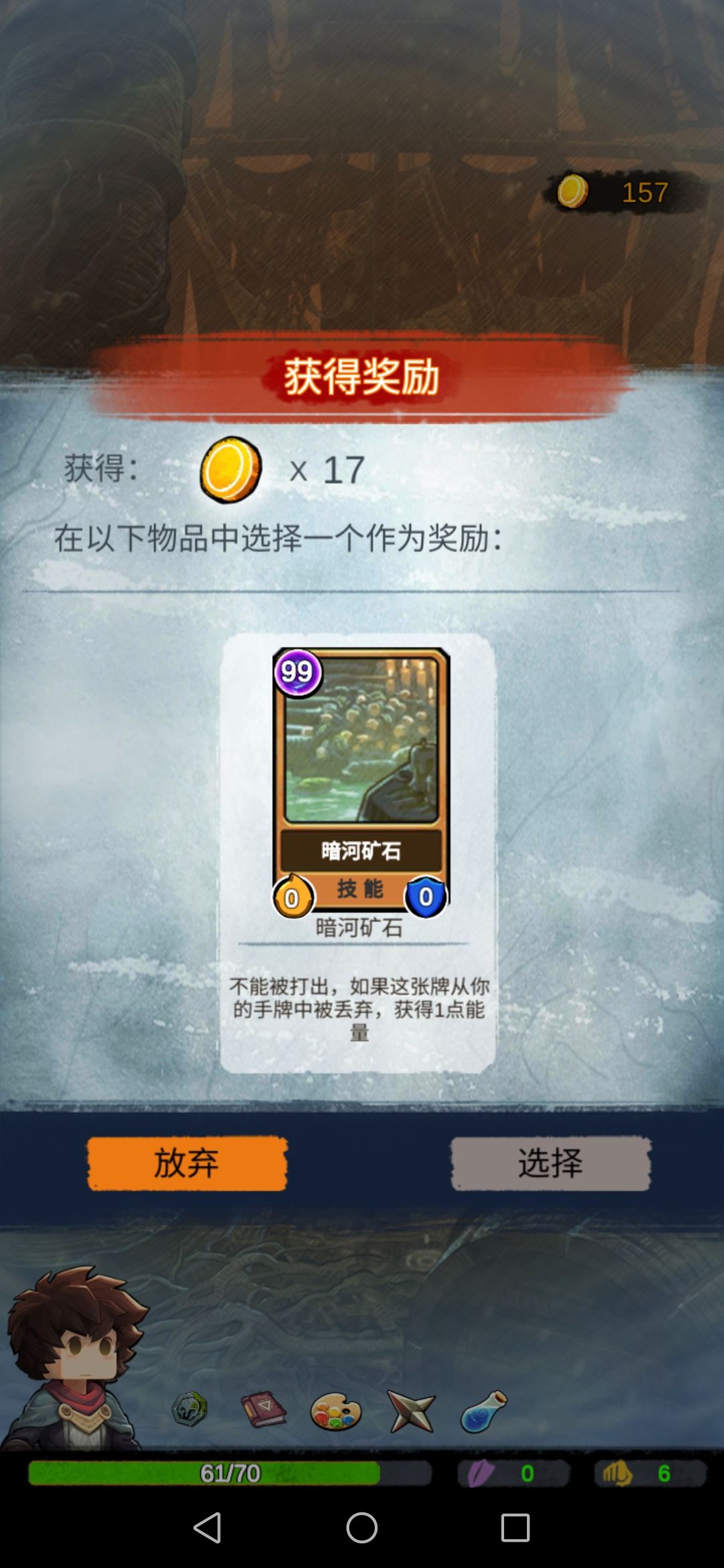 获得了暗河矿石:不能被打出,如果丢弃获得一点能量