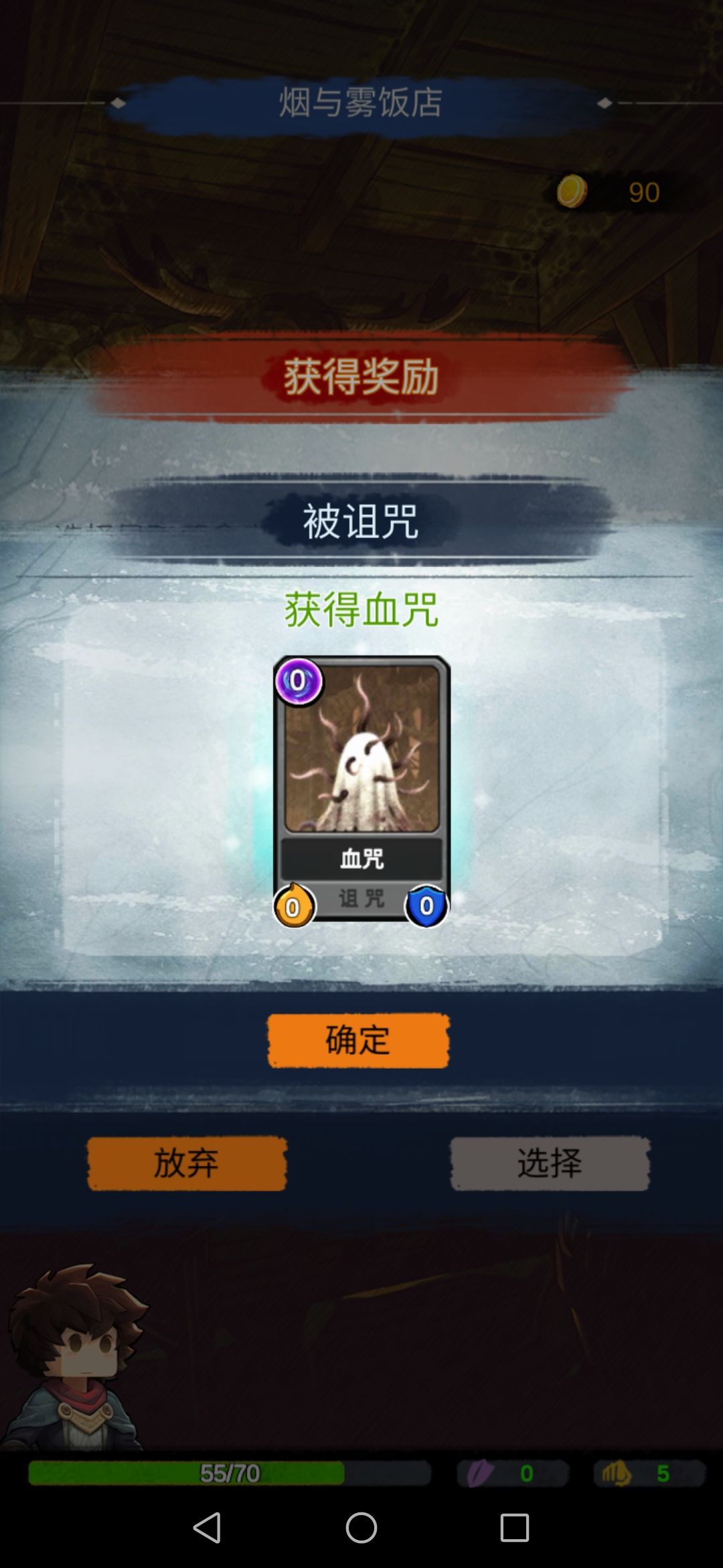 重新进入饭店,开小箱子,拿,秘器永远不嫌多,同时获得了一张负面诅咒牌