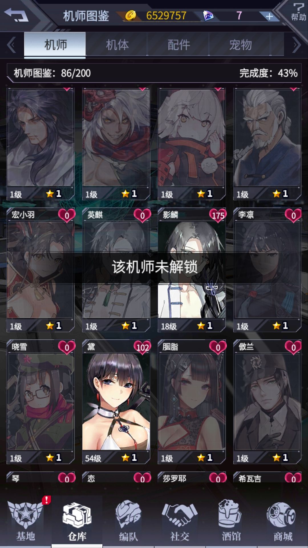 出bug了吗,我所有未获得机师好感度都是0我记得这个界面是可以显示未获得机师的好感度的吧。😒😒😒😒😒