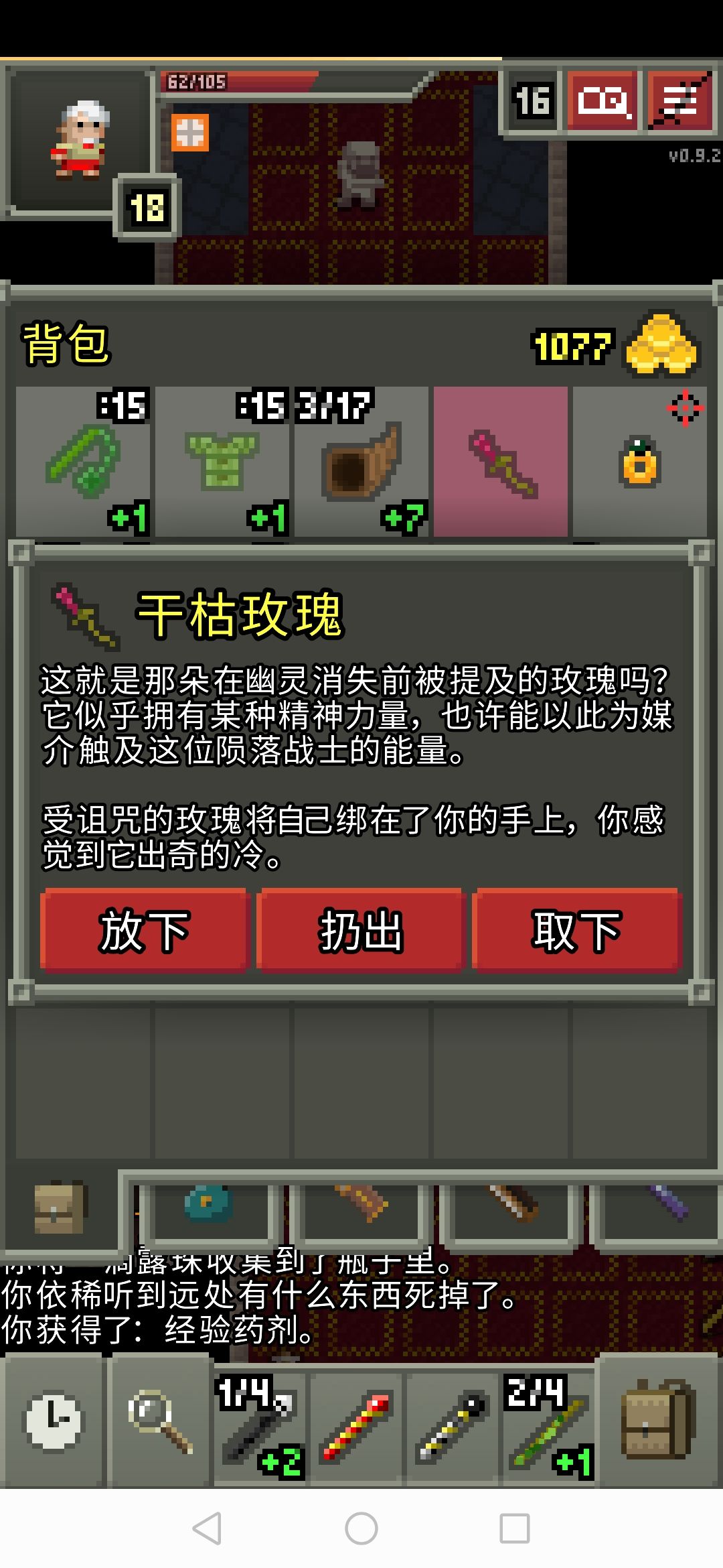 上面是在矮人城里找到诅咒玫瑰,穿上后不一会就开始招幽灵