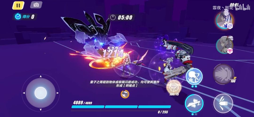 第二阶段:尽量快地捡光球,然后防御反击或者盾反。时刻注意着让自己处于时空断裂之中,记住,我们有两种进入时空断裂的方法,山吹盾反和月光主动闪避。如果当你想用月光主动闪避时发现它的冷却没好,那么这必定是因为薛定谔中效果没有触发正确,重新开一局吧……