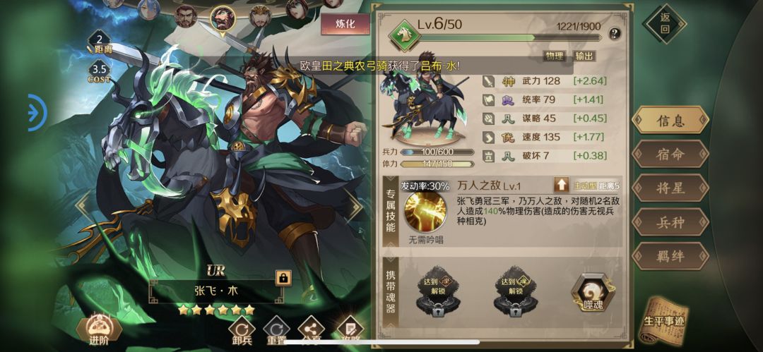 张飞,蜀国名将,与刘备、关羽是“桃园结义”的兄弟。其人以勇猛、鲁莽、嫉恶如仇而著称。曾于长板桥仅率二十骑断后,据水断桥,百万曹军无一人敢近身。张飞的技能也像他的介绍一样属于爆发型,拆解的武器也是群体攻击加控制。不管是作为大营输出或者拆解武器张飞无疑都是全战顶级卡牌。