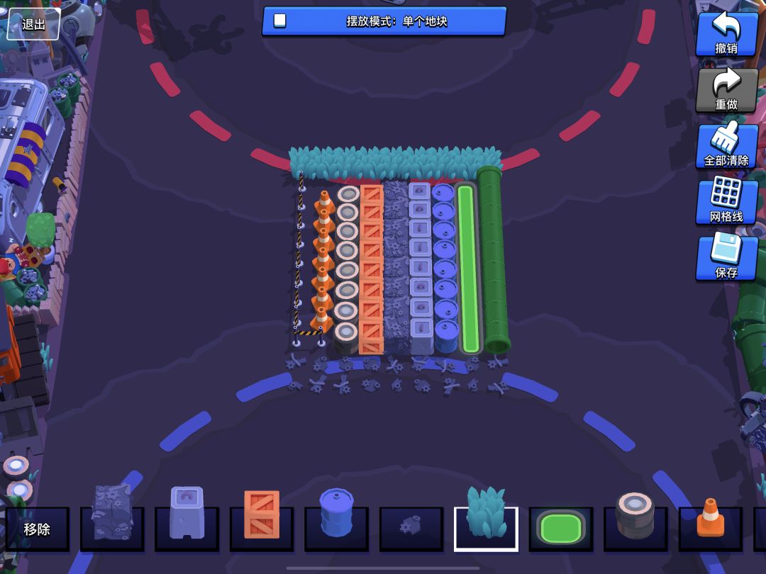 地图场景目前默认选用废品回收场,可摆放障碍设施如下: