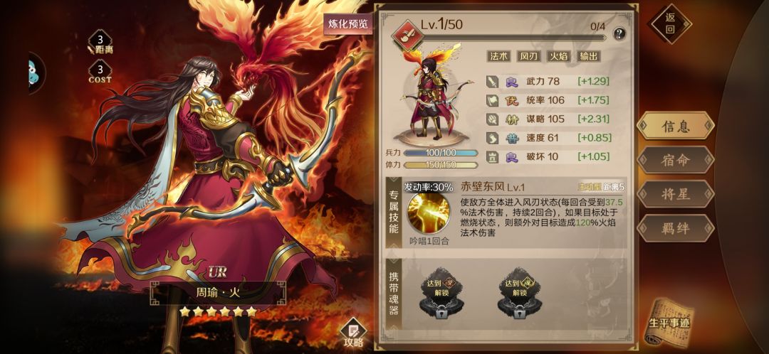 由于他在赤壁之战中,对于火的妙用,吴蜀联军大败曹操。因此在各种游戏中周瑜都离不开火,就说全战中的赤壁东风此技能,简直是火烧神技,搭配上陆逊,嬴政,就是无敌暴力的火法队。焚天业火燃尽一切。