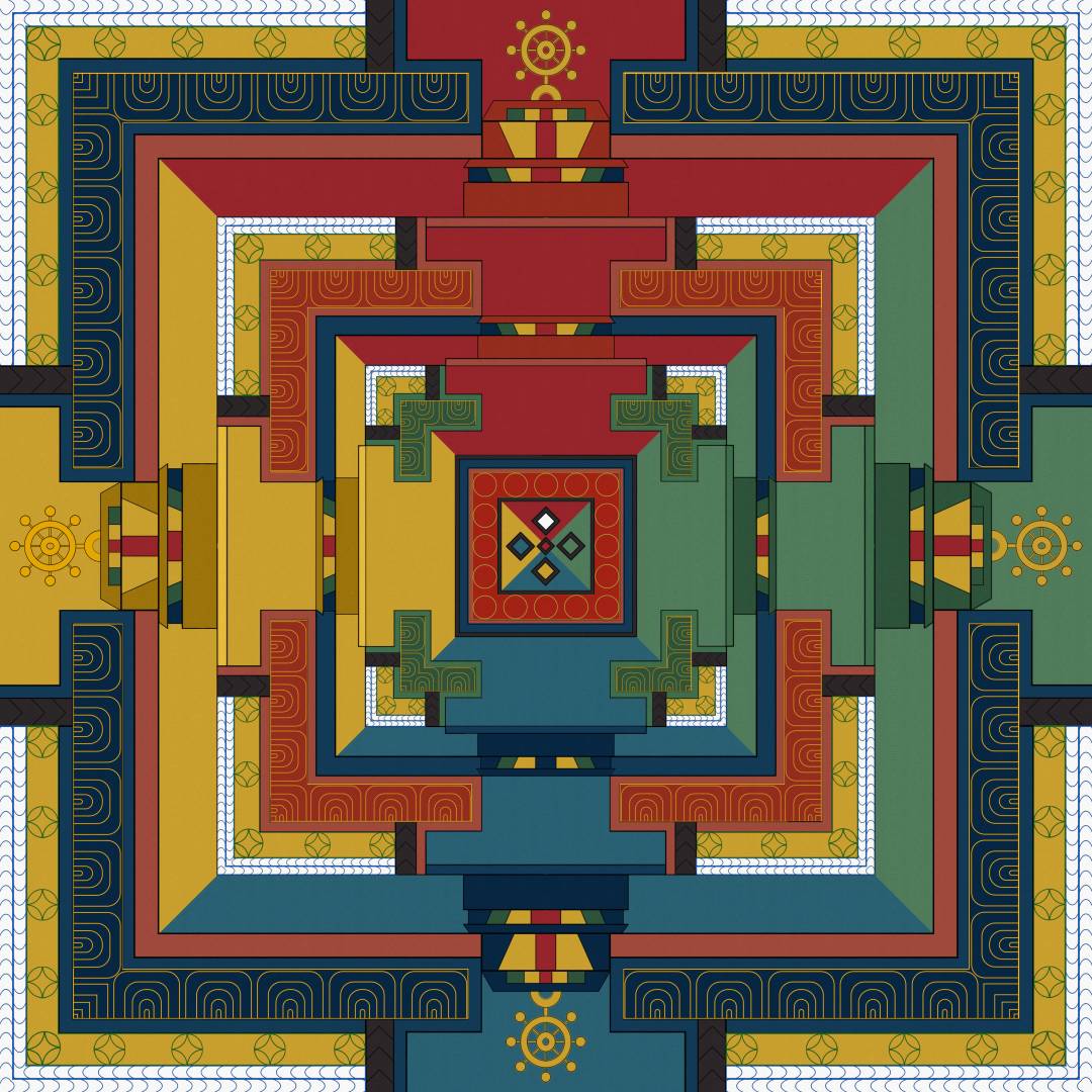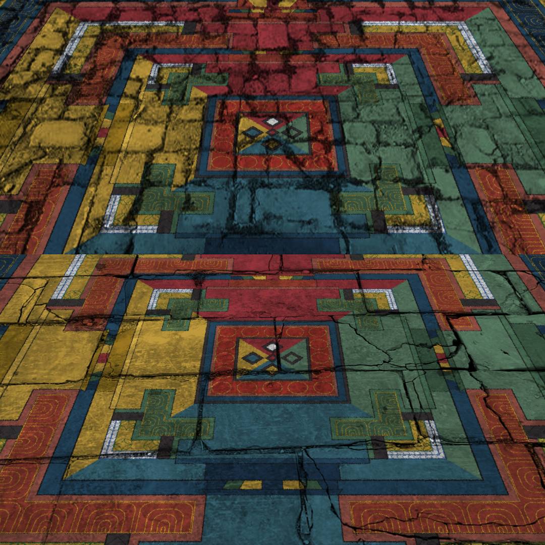 这周把新章节中一个重要场景经反复讨论和设计修改,最终搭建了出来——坛城画,为了适应场景,打造出一种神圣感与恢弘感,我们并未采用沙画或壁画的材质形式来还原,而是采用了地画。难点在于还原坛城画的精细繁复,同时还要将其与《藏梦》的游戏画风进行匹配调整。虽说花了不少时间进行沟通调整,但我们依然想把坛城画这种绝美艺术展现给玩家去体验。