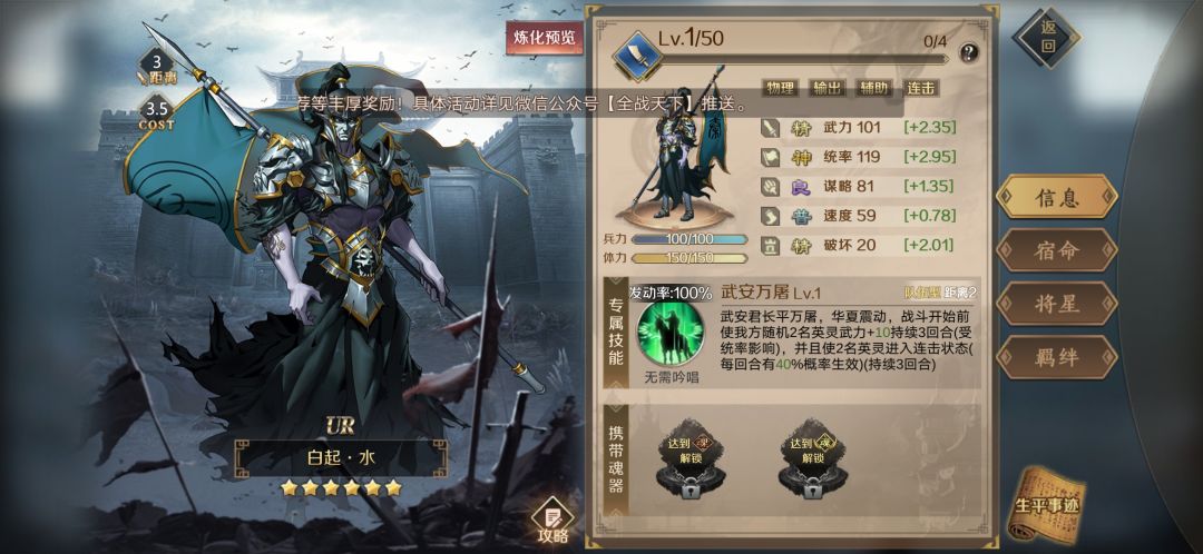高达3.5的cost要求注定了白起是一位偏后期才能够上阵的英灵。