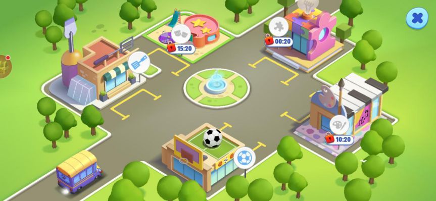 除了小巴士之外,树屋也是一个比较特别的地点。拖拽任何一个角色进入树屋,全部角色都会聚集在这里,类似游戏屋的地方,里面的游戏适合所有角色一起玩,比如水球,点击角色可相互丢传水球,每丢一次水球就会大一点,最后随机爆炸。就很像击鼓传花的玩法。玩家可以叫上自己的小伙伴,看看水球会在谁的手上爆炸呢?