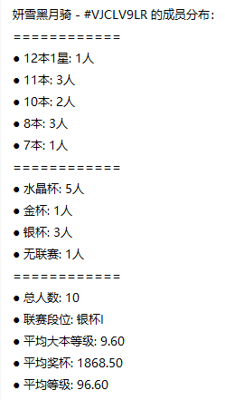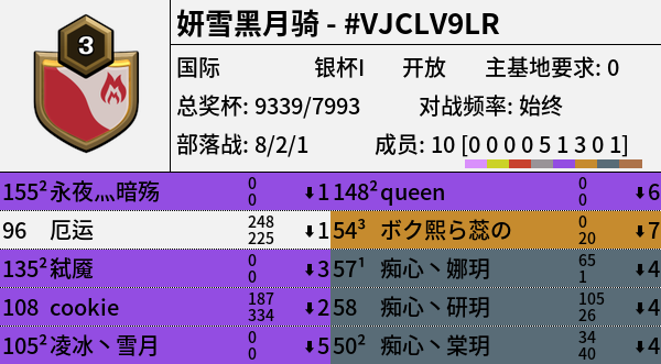 分部:妍雪黑月骑 部落标签:#VJCLV9LR