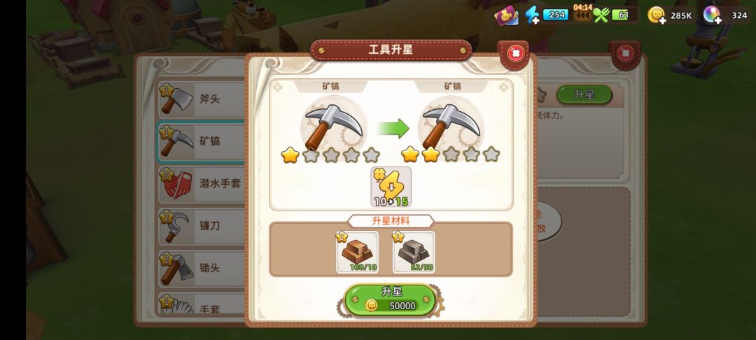 二星,十铜 五十铁 50k金币