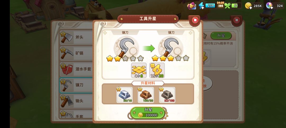 每星工具的材料消耗