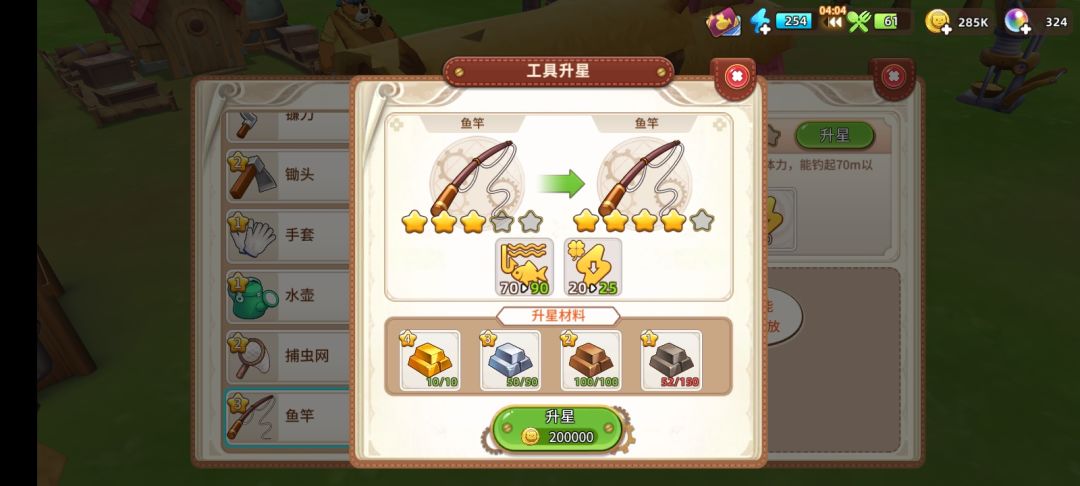 要问我为什么发这个帖子,我当初在论坛搜四星杆和五星工具要的材料,一直没搜到,也没打算问,升完杆知道了五星材料,然后顺便截了屏,发个帖子,万一以后也有人想先了解呢