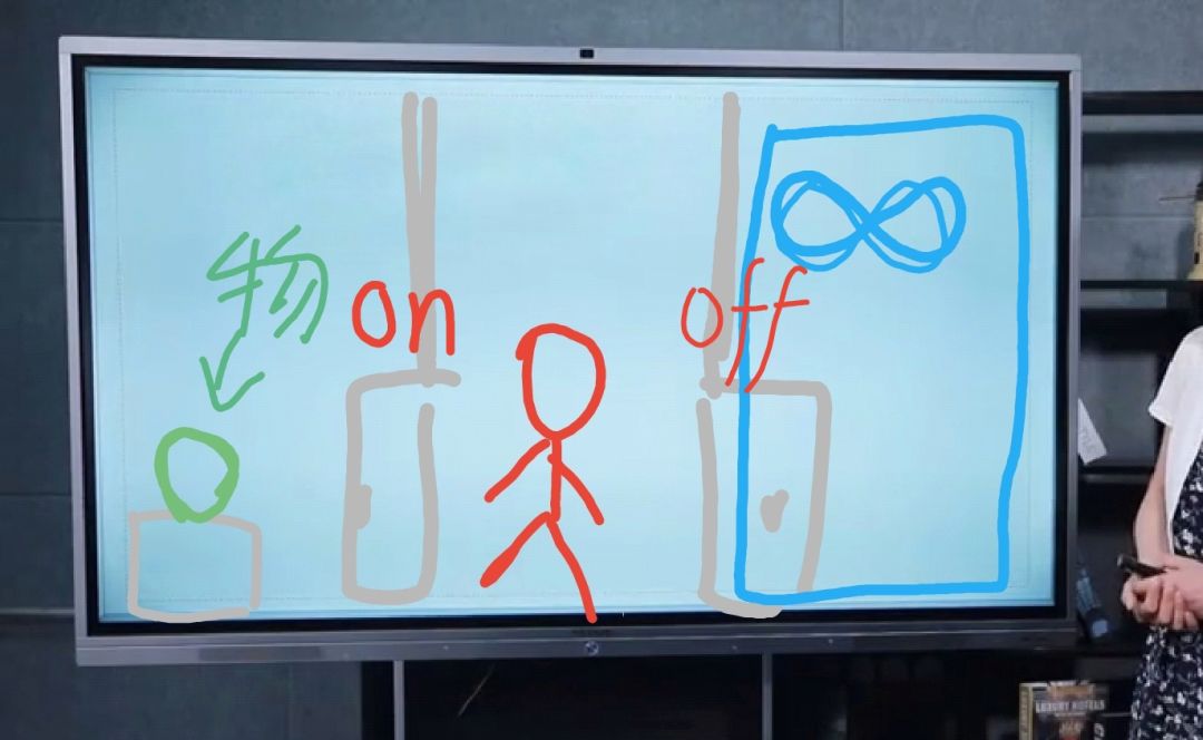 如上图,像上次那样,咱们把物体拿起来,把放物体的房的门关上,打开了循环房间的门记录了当前状态后,又把物体放了回物体房,出来站着。