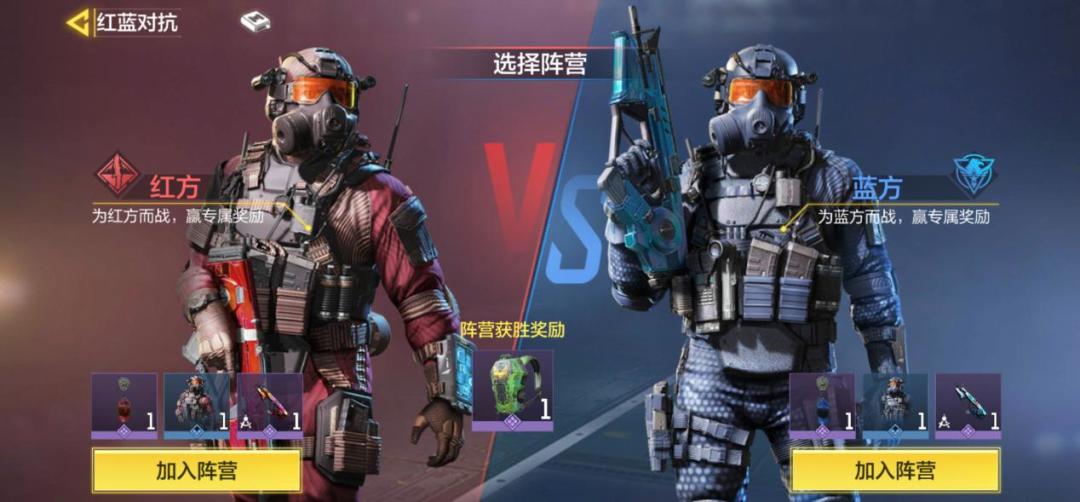 参与红蓝对抗的奖励可谓相当丰富,武器蓝图、全新角色、专属名片、限定挂饰等活动限定福利都在这里。活动中不论参加哪一个阵营,只要保持足够的活跃,完成对应获奖条件,我们即可拿到对应奖励。两个阵营唯一的区别就是各阵营获取的道具颜色与阵营颜色相对应,所以单兵作战情况下,参加哪一个阵营我们可以参照自己喜欢的颜色决定。当我们有经常开黑的队友或者朋友时,那么最好是商讨下,统一决定下去哪个阵营。毕竟和熟悉的队友开黑,可以更轻松的掌握战场节奏,帮助己方更容易的获取胜利。