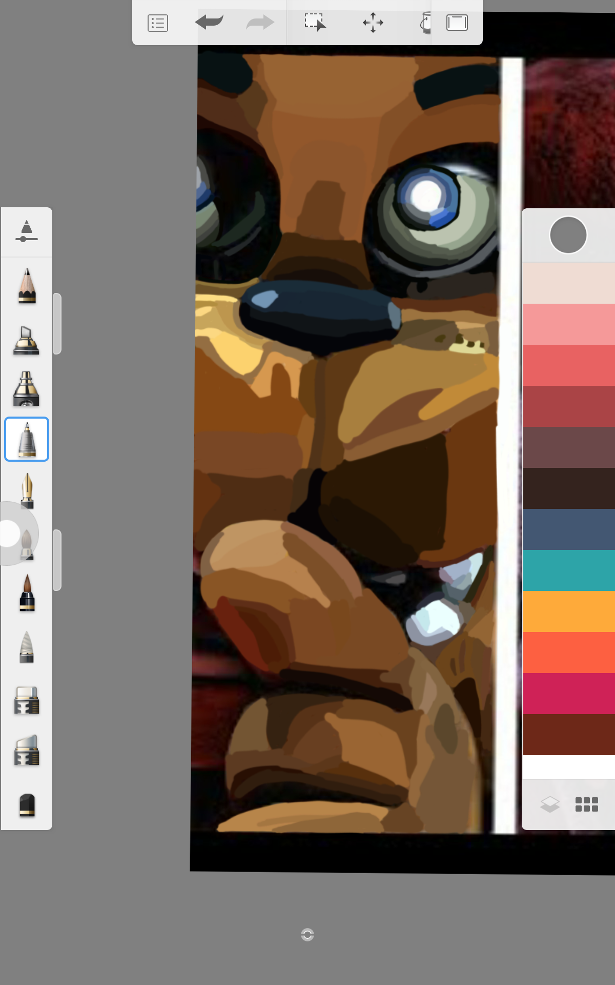 前两张图是我已经画好的图,是东方的人物。不过我对东方的认知几乎为0,只是随便找两个人物画一画,练习一下技巧。至于第3张图是我正在画的作品,我打算把玩具熊的5夜后宫二代的凋零4人组画出来,目前只画好了弗莱迪,不过画起来可真累人。