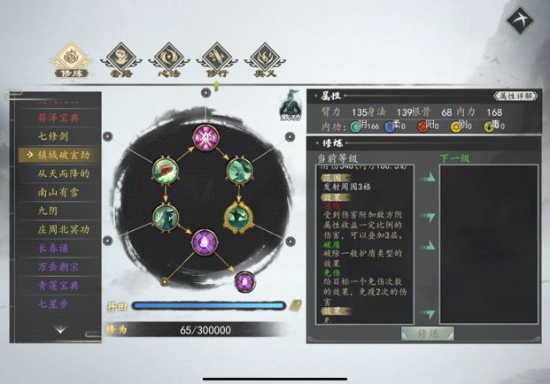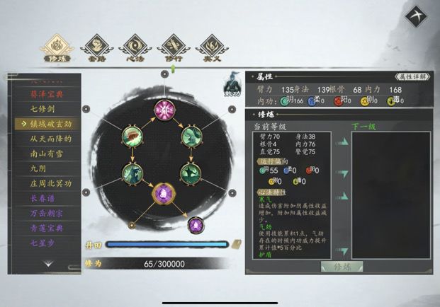 宗师难度30w修为池挺吃紧的,灵活利用散功,前期学的神怆经洗髓经淘汰了就散功掉(洗髓经挺配阴拳的,洗髓加的伤害好高,前期可以用洗髓经加七星步走柔属性过渡,阴和柔属性不相克,还有杭城武馆的八卦掌)。轻功后期只点第一层点出轻工效果,那些➕搏击的没必要浪费修为点,反制打架也能涨,上限200,没意义。