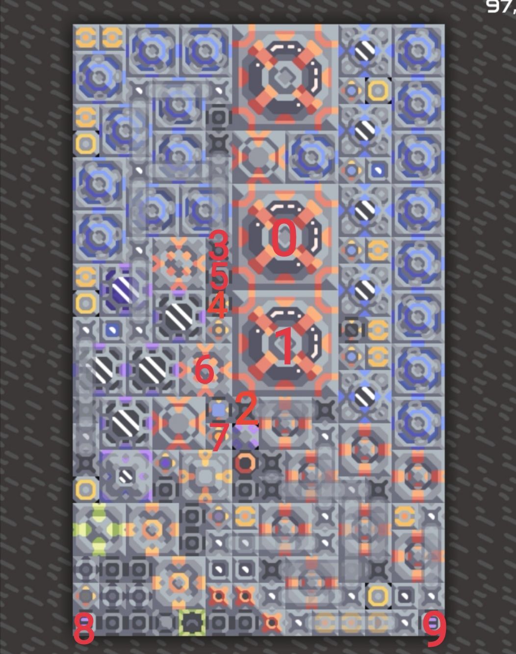 ⑤节约废料:没有不必要的浪费,从而可以用最少的废料来发动冲击。在有逻辑时,这一点不会体现在蓝图中,将会在逻辑中实现。