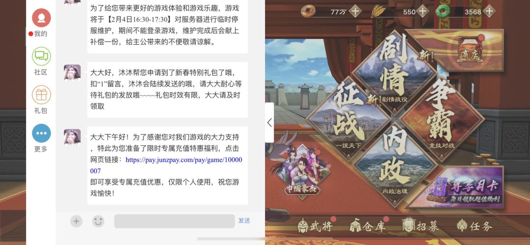 屯卫删除了!你叫我们怎么升级兵种每天资源就那么多打战役真的是牛逼每次200而且给蓝色的屯卫你来玩策划我来看你怎么升级兵种,另说下女将活动100合成一个请问是镶金边么还是逆版本的猛!我之前氪金觉得好玩现在别指望我冲任何一分钱也不要发这个充值渠道给我!想留住玩家就做一点有意义的事情!我发现只要是玩家受益就全 TM是bug要修复!我再也不会去充值发你妹的专属渠道你们配么!!狗B
