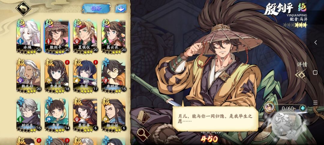 一、殷剑平作为炎属性近战的侠客,其特点是有着很不错的自我战后恢复续航能力,不但有成长的高物攻,还有成长的高气血,作为输出型英灵爆发力和生存力都非常出色,在铁定的副本里也可以可以当做单体输出,同时也是新手池的最好选择
