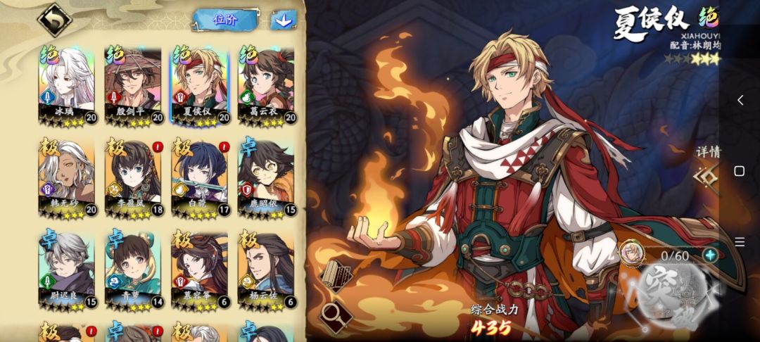 夏侯仪有自己的战阵【千煌幻日阵】,战这个阵的特效能额外提高10%范围技能伤害,如果在配合上都是群体伤害技能为主的队友效果是最好的。