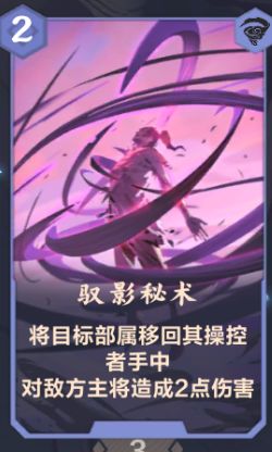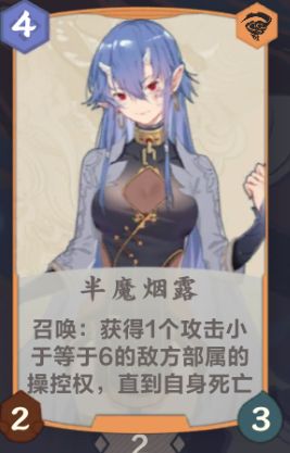 【半魔烟雾】上场控制对方小于等于6的部署之后,用【驭影秘术】将【半魔烟雾】回手,被控制部署就会永久控制,毫无办法,四舍五入约等于一个控制6攻以下的【太玄忏魂剑】,顺带还能打对面2血