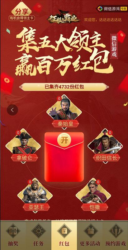 活动期间,玩家集齐一套(5张)「领主卡」,即可100%兑换现金红包!