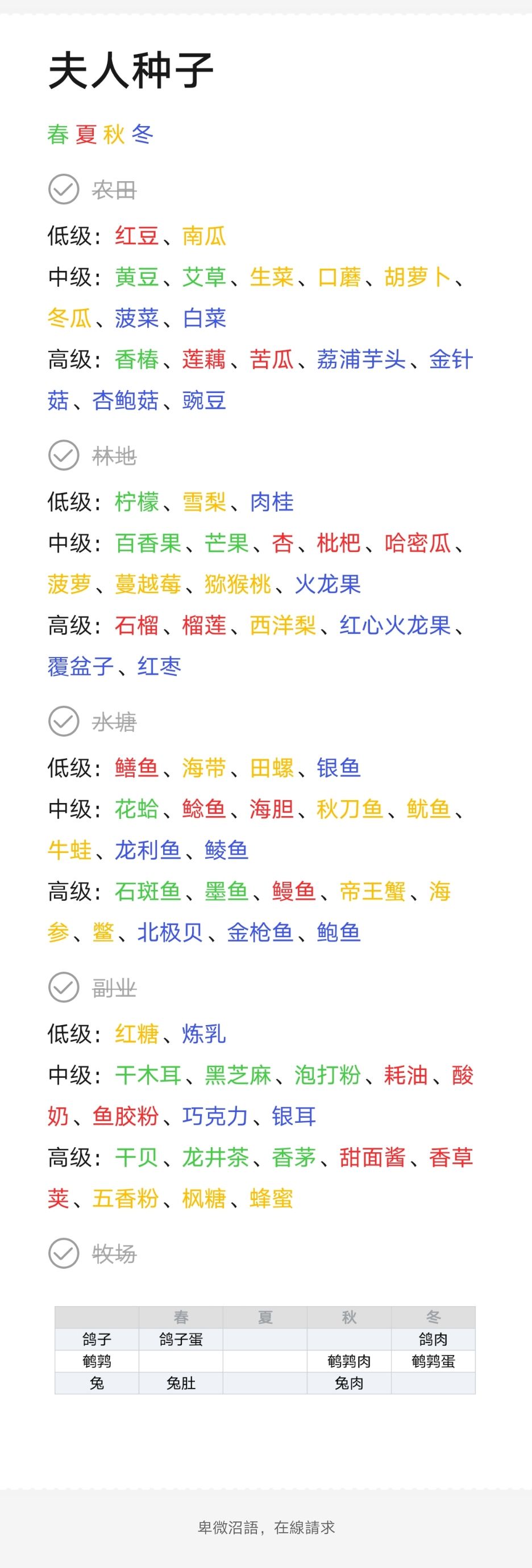 【不更了】食材种子获取位置、季节