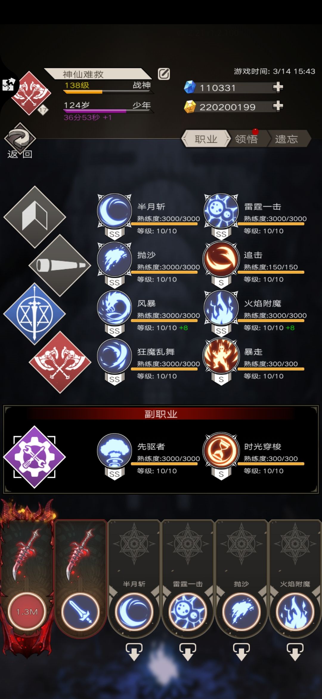 2、技能BD选择有如下几套 1至4转基本固定 (1转角斗士,2转冒险家,3转魔剑士,4转战神,副职业4转机械先驱)这是最优解,也是输出最大化的一套,4转的英灵的被动可以忽略,幻影破灭吃攻速,所以血咒可以别用了,血咒不算太吃攻速有个180%-220%左右就行了,随便都能到。这些说完,下面说技能装配