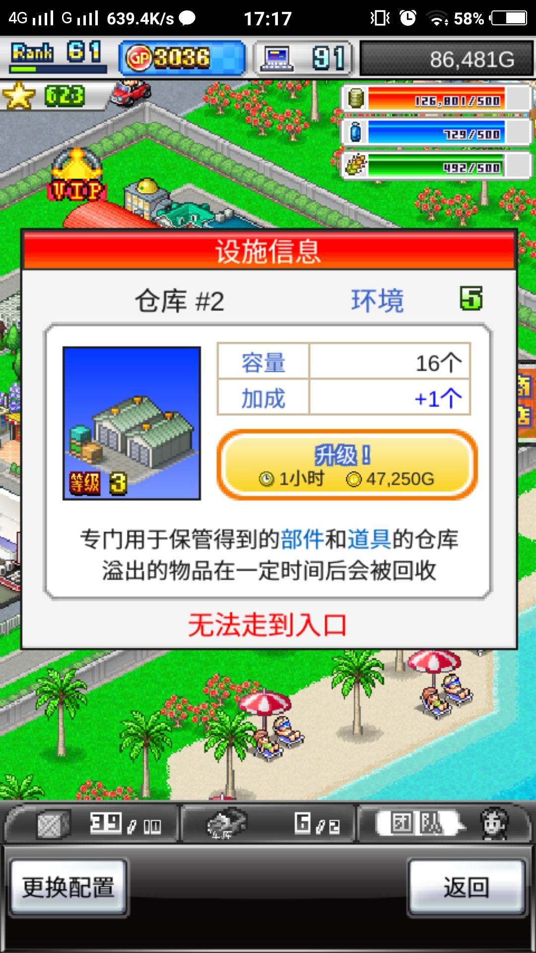 仓库从66个容量降到了10个,所有的建筑都变成了没有路,车库也变成了2个