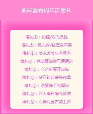 这份福利大全请舞者们务必收下,快登录游戏前往炫舞三周年庆典,一起游园玩耍畅快领大礼叭!