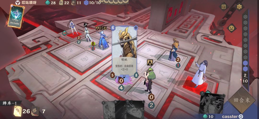 你可以看到我这套带了许多神兽,甚至是有些亏费的白虎。但是对于雷法来说,前期高质量的铺场和优秀的回血肯定是噩梦,虽然也被雷法前期就双雷符,大雷回溯直接劈死过,不过也就两三次而已。前中期满场大屁股的优质神兽还有睚眦受伤还能加攻击的效果无疑给全场打五的雷法很大压力,值得一提的是,白虎就算被劈死了,本回合翻开的野兽也会冲锋,面对雷法俺肯定是一个螃蟹拳,一个操控,重拳出击。