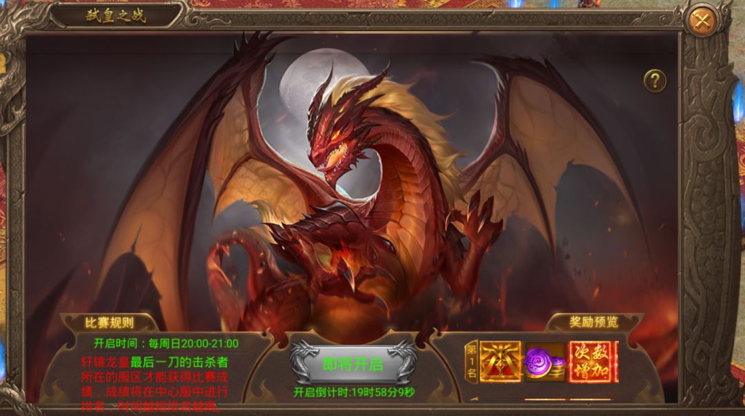 (1)魔龙大陆分组内同时争夺一只轩辕龙皇BOSS。