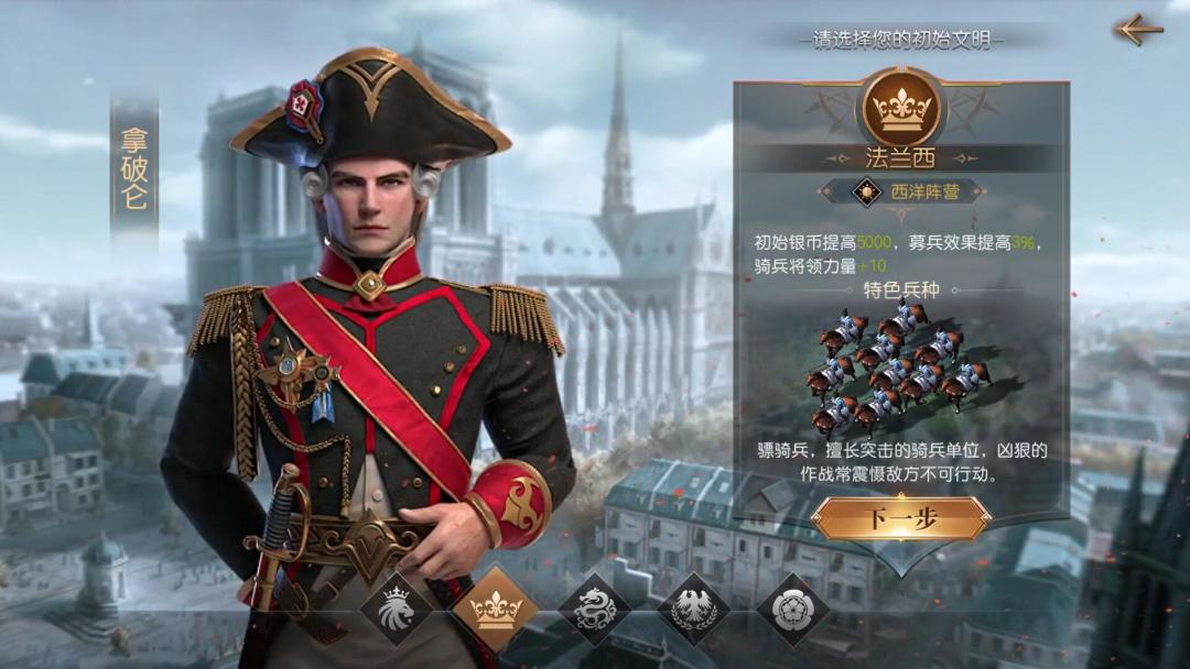 那么,面对众多文明,我们该选择哪个文明作为角色的初始文明呢?在做决定之前,不妨先把所有文明逐一了解了再做决定——来看看法兰西文明吧!
