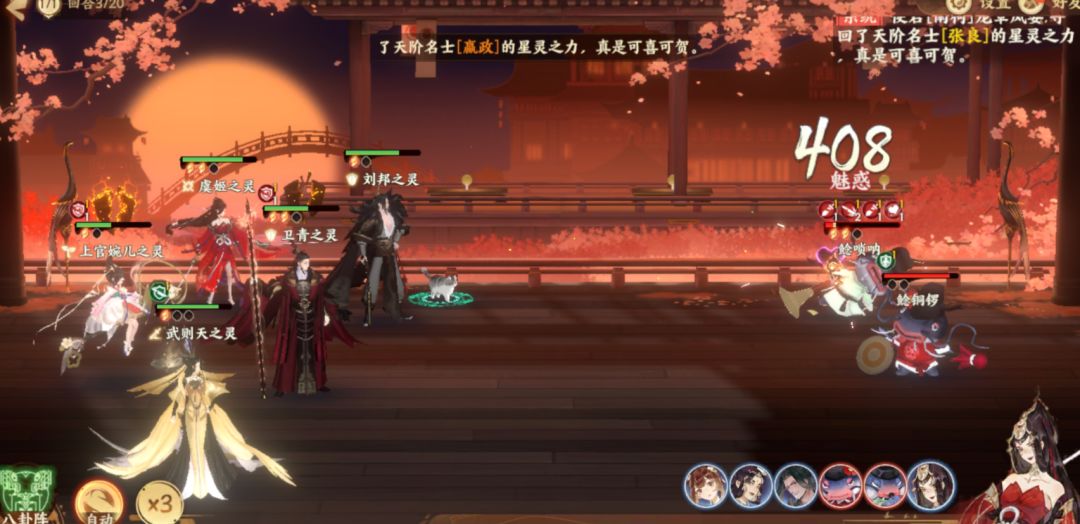 几个回合下来,“恶灵之气”便都被消灭了。不过却又出现了两只拦路的恶灵,点击它们头上的攻击键,使君们便可以派出队伍,将它们消灭了。