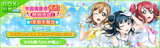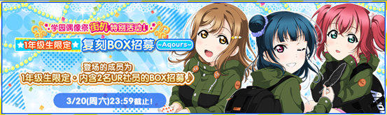 ■ 学园偶像祭街机特别活动!1年级生限定BOX招募~Aqours~