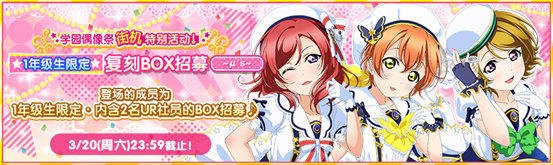 ■ 学园偶像祭街机特别活动!1年级生限定BOX招募~μ’s~
